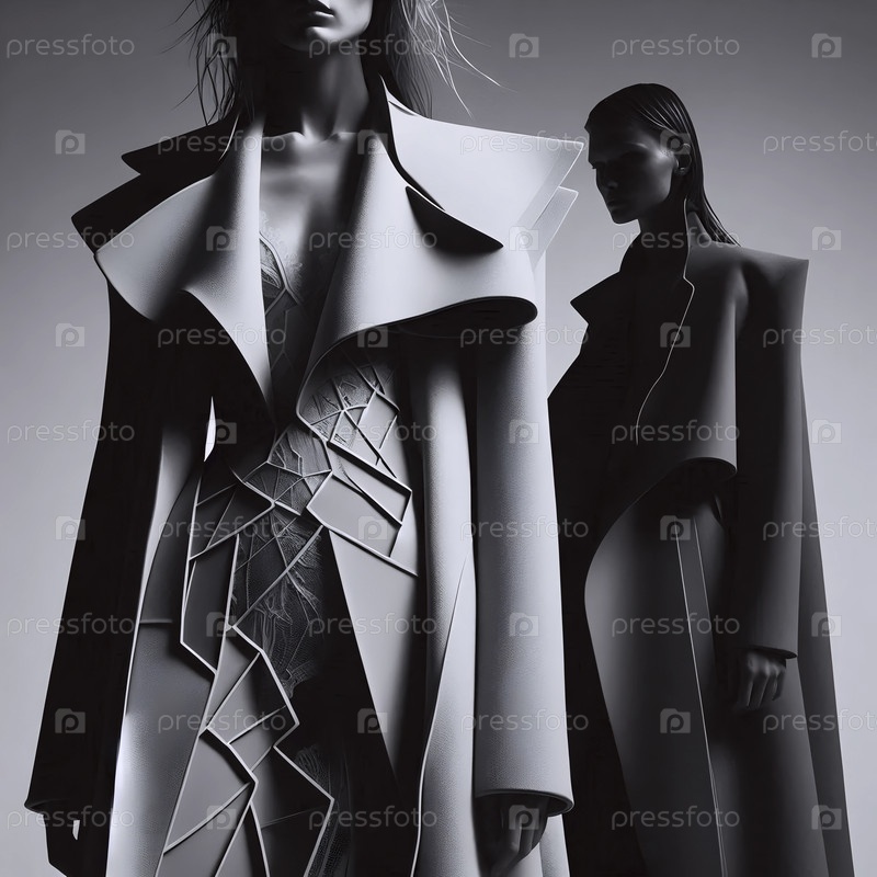 Женщина в асимметричном архитектурном пальто, Ai generated image