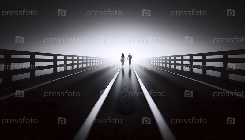 Размытый пар, идущий по мосту ночью, Ai generated image