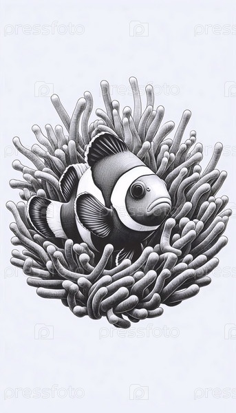 Клоунфиш чернила рисование арт-принт, Ai generated image A