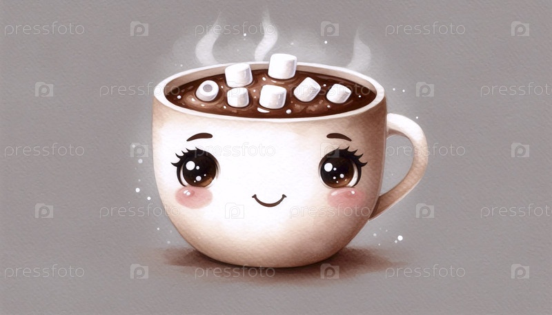 Уютная чашка какао акварель художественный печат, Ai A generated image