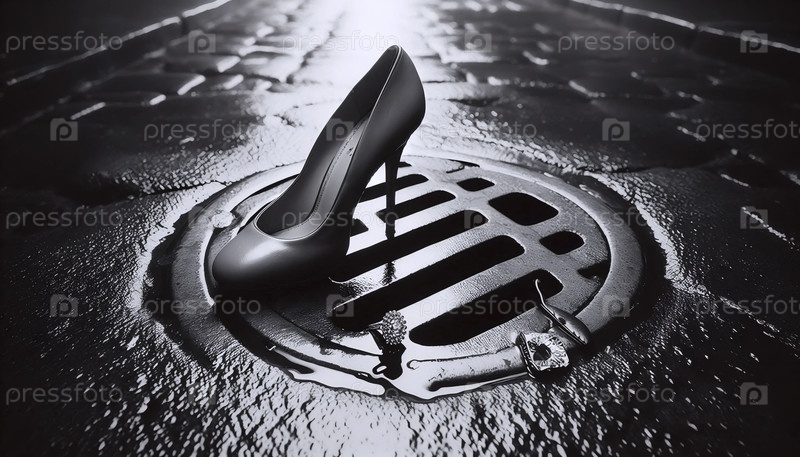 Высокий каблук застрял в канализационной решетке, Ai generated image