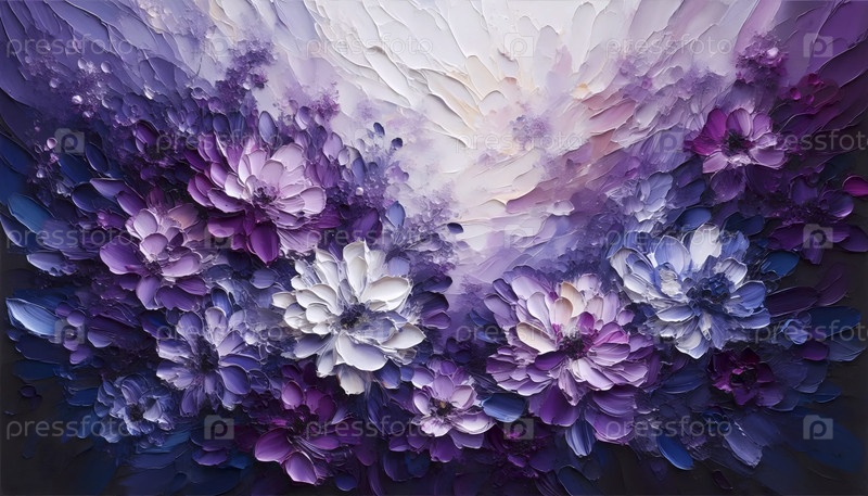Абстрактная фиолетовая цветочная пейзажная живопись, Ai generated image