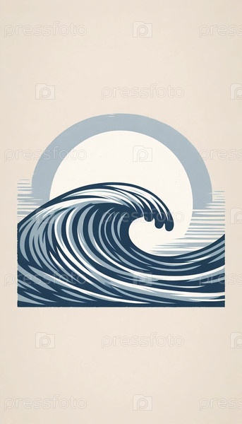 Винтажный минималистический печатный принт океанских волн, Ai generated image