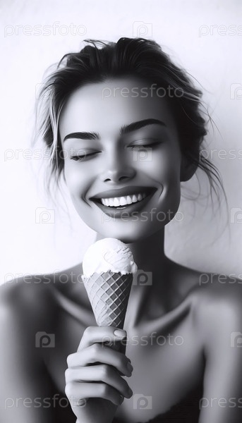 Винтажный портрет наслаждения мороженым, Ai generated image