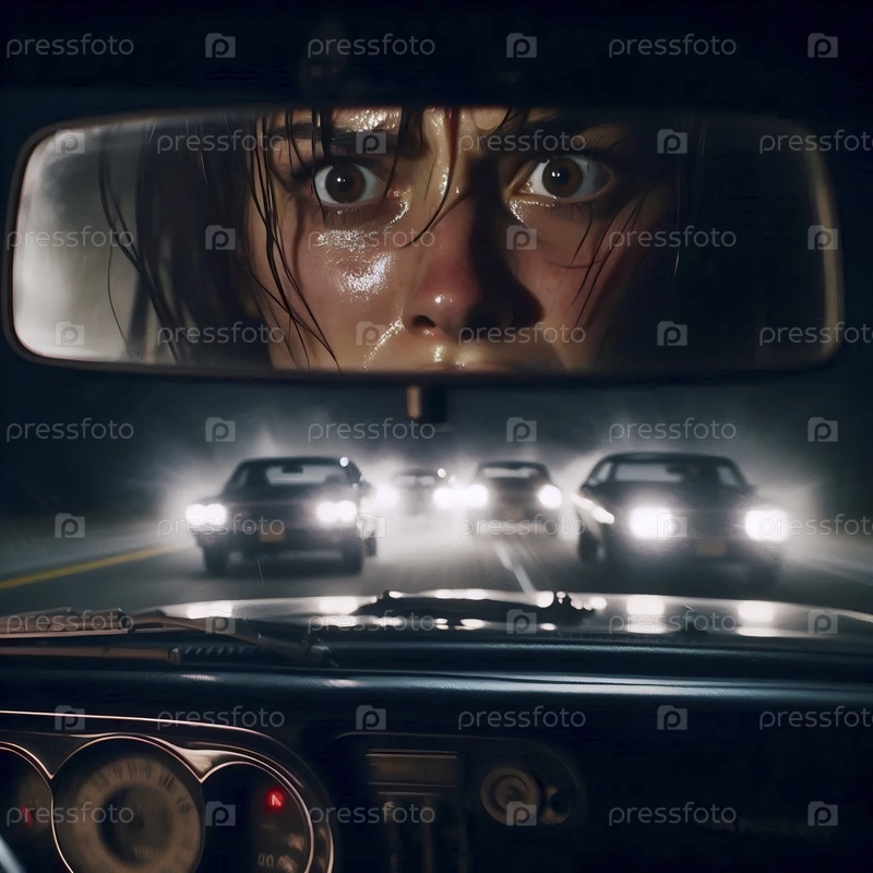 Зеркало заднего вида сцены преследования вблизи, Ai generated image