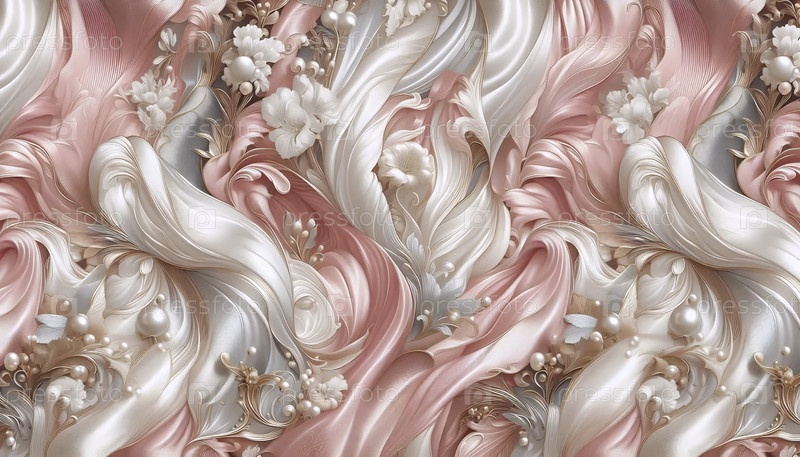 Итальянский дизайн розового атласа абстрактного узора для модного платья, Ai generated image