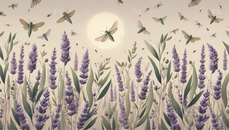 Провансальное поле лаванды бесшовный шаблон, Ai generated image