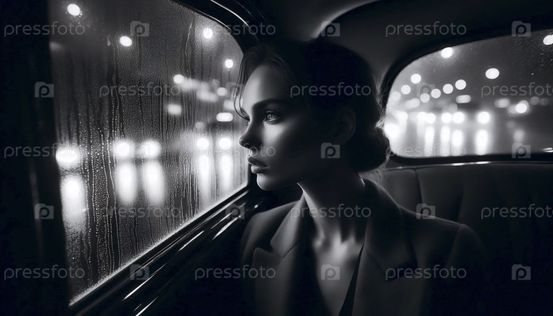 Дождливый портрет из окна такси, Ai generated image