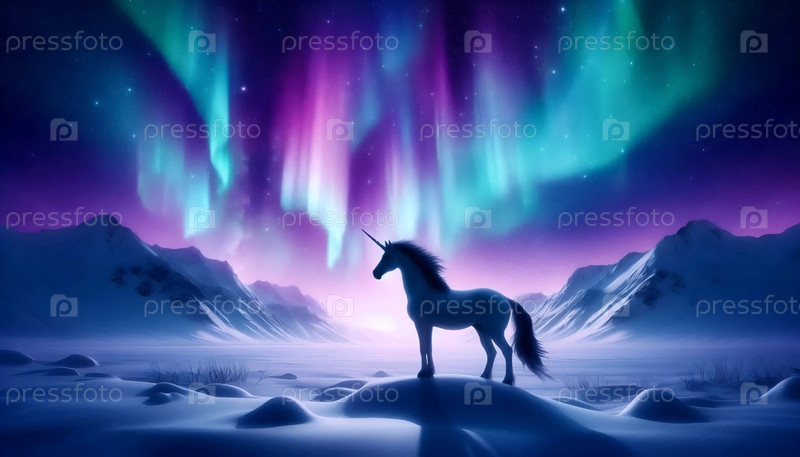 Единорог с северными сияниями, Ai generated image