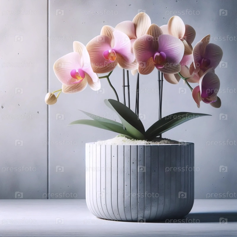 Орхидея в бетонном горшке, Ai generated image