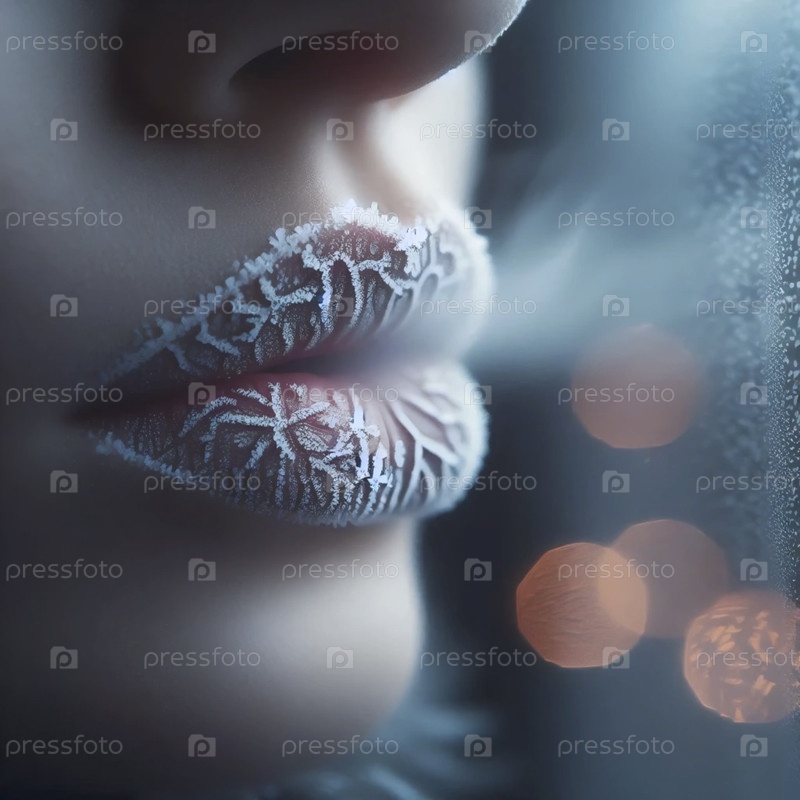 Портрет с холодными губами и дальним взглядом, Ai generated image