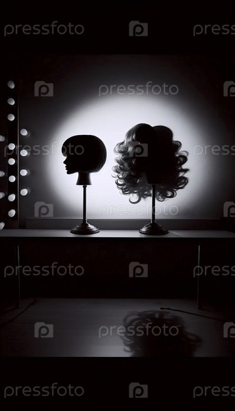 Тени двух разных париков выложены на стене, Ai generated image