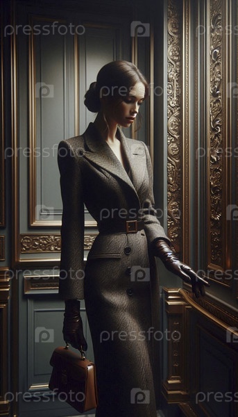 Женщина в строгом костюме из твида, регулирующая свою перчатку, Ai generated image