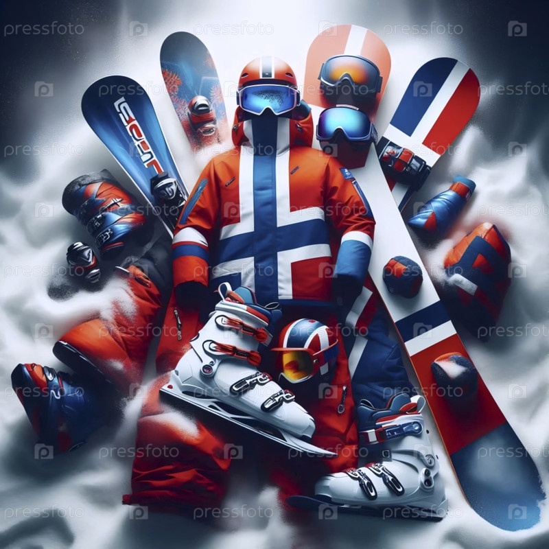 Норвежский флаг в зимнем спортивном оборудовании, Ai generated image