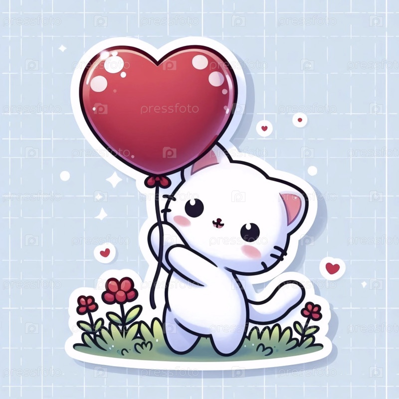 Милый наклейка котенка, держащего воздушный шар, Ai generated image