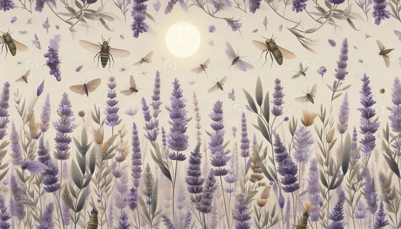 Провансальное поле лаванды бесшовный шаблон, Ai generated image