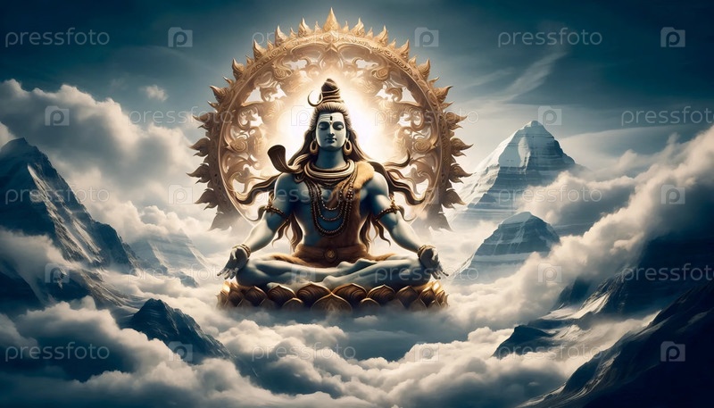 Господь Шива плавает над горой Кайлаш, Ai generated image