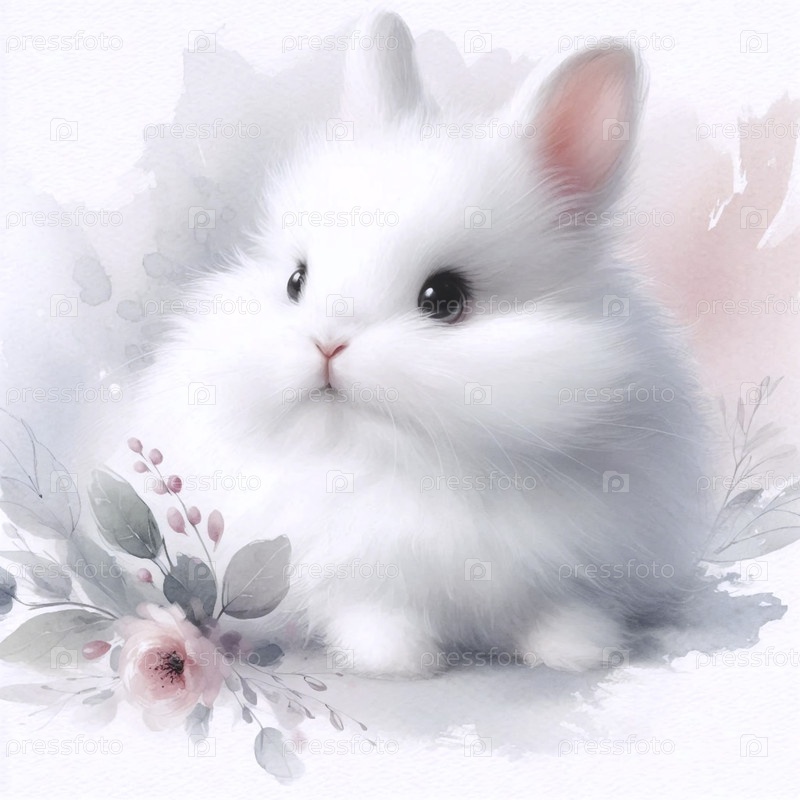 Сладкий кролик акварельный художественный печат, Ai generated image A