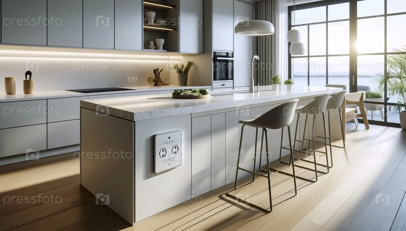 Кухня с скрытыми всплывающими розетками, Ai generated image