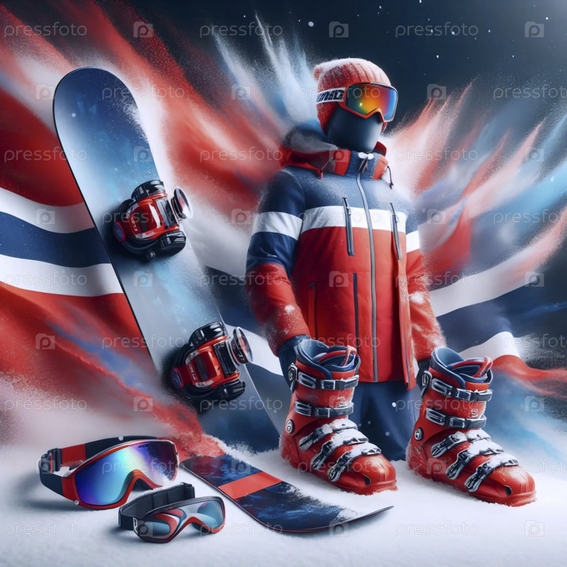 Норвежский флаг в зимнем спортивном оборудовании, Ai generated image