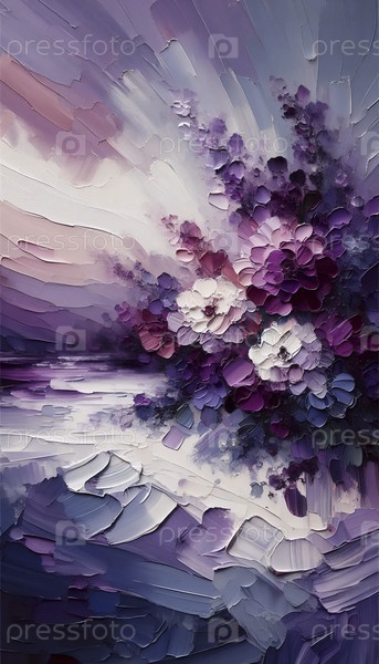 Абстрактная фиолетовая цветочная пейзажная живопись, Ai generated image