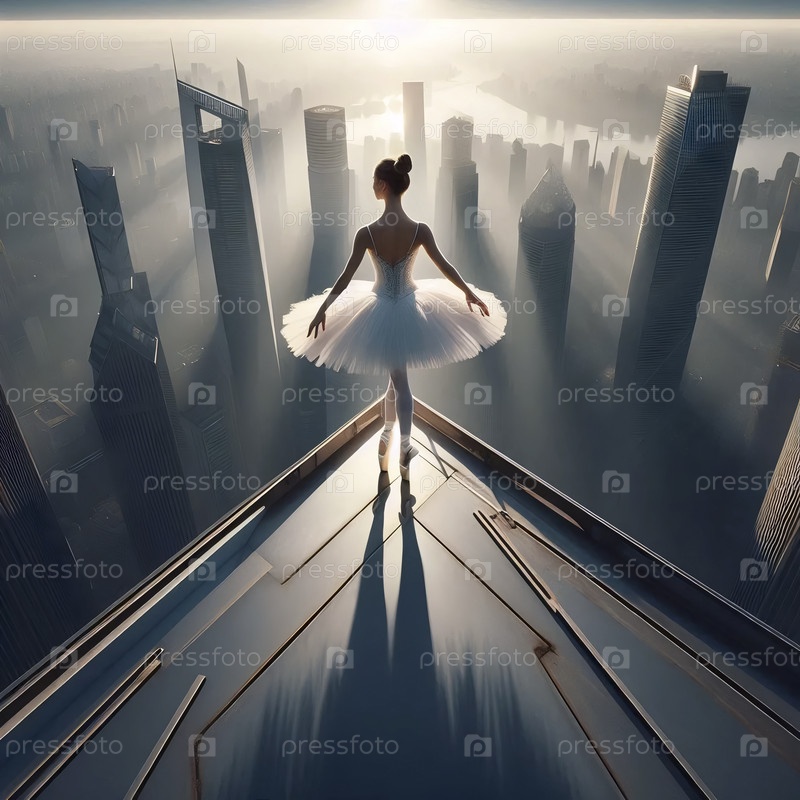 Балерина на крыше небоскреба, Ai generated image