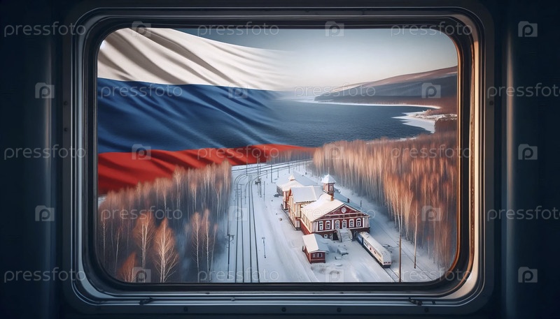 Российский флаг в путешествии Транссибирской железной дорогой, Ai generated image