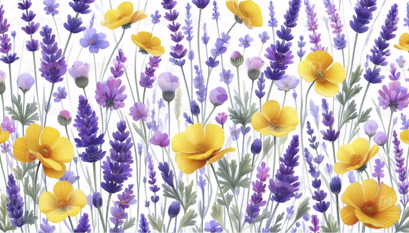 Фиолетовый и желтый цветочный бесшовный повторяющийся рисунок, Ai создал изображение