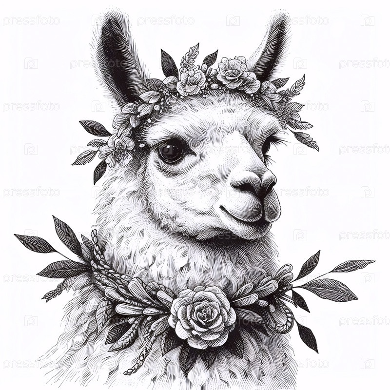 Ллама с цветочными чернилами рисование художественная печать, Ai generated image