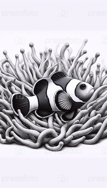 Клоунфиш чернила рисование арт-принт, Ai generated image A