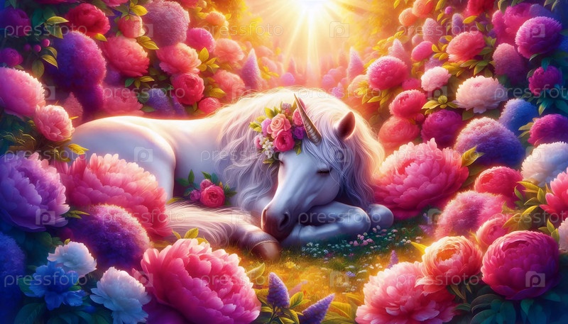 Единорог в цветущем саду, Ai generated image