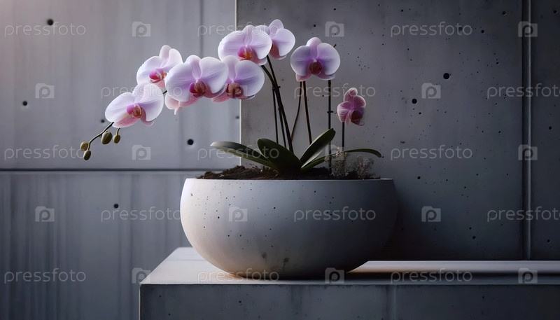 Орхидея в бетонном горшке, Ai generated image
