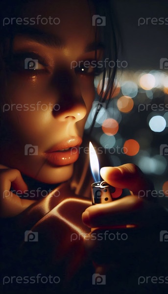Близкий план пламени, освещающего ее лицо, Ай создала изображение