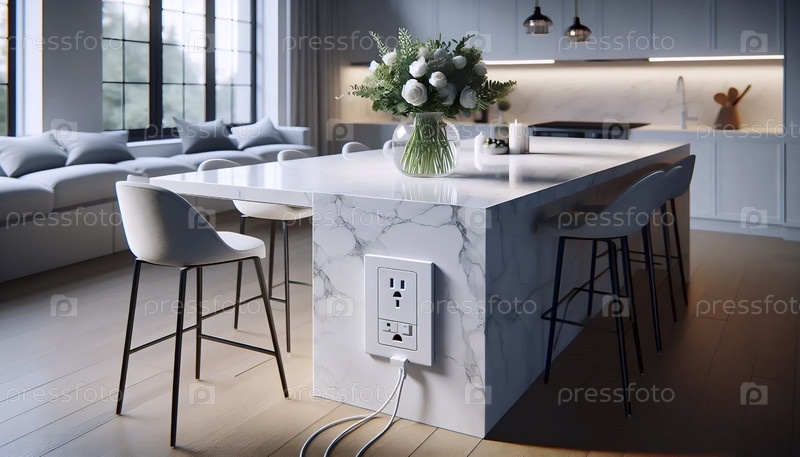 Кухня с скрытыми всплывающими розетками, Ai generated image
