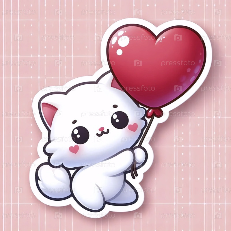 Милый наклейка котенка, держащего воздушный шар, Ai generated image