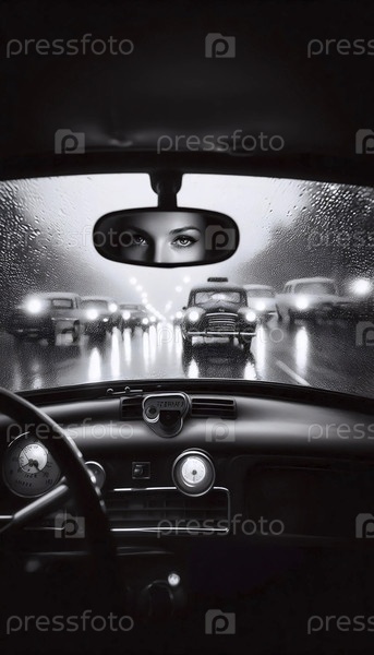The drivers rearview mirror portrait, Ai generated image (Портрет водителя в зеркале заднего вида), созданный Ай