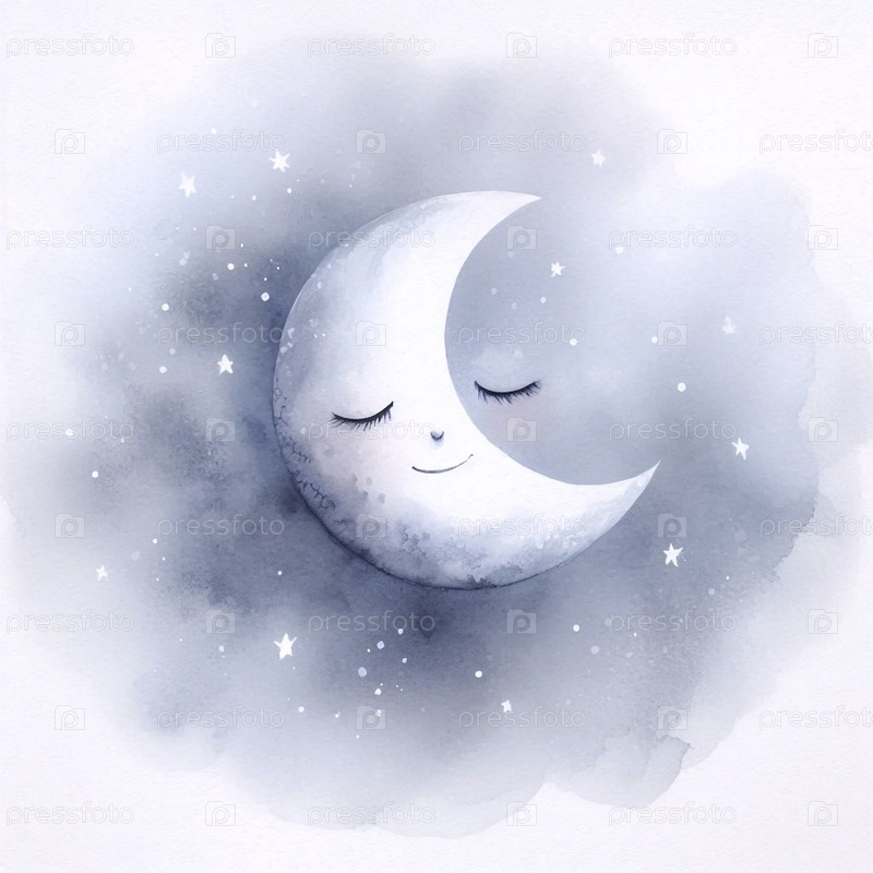 Спящая Луна акварельный арт-принт, Ai generated image A