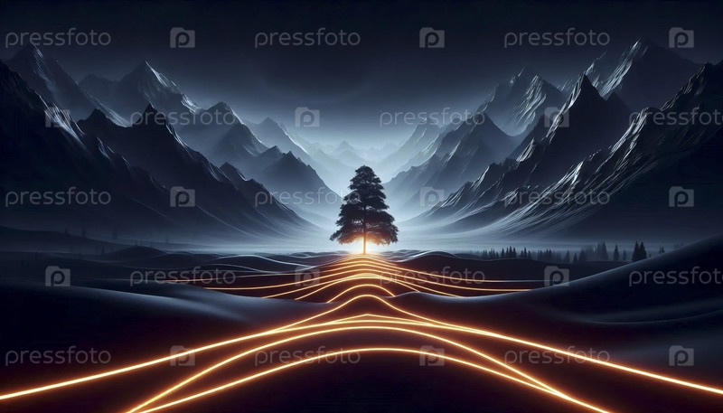 Непрерывно светящийся неоновый художественный ландшафт, Ai generated image