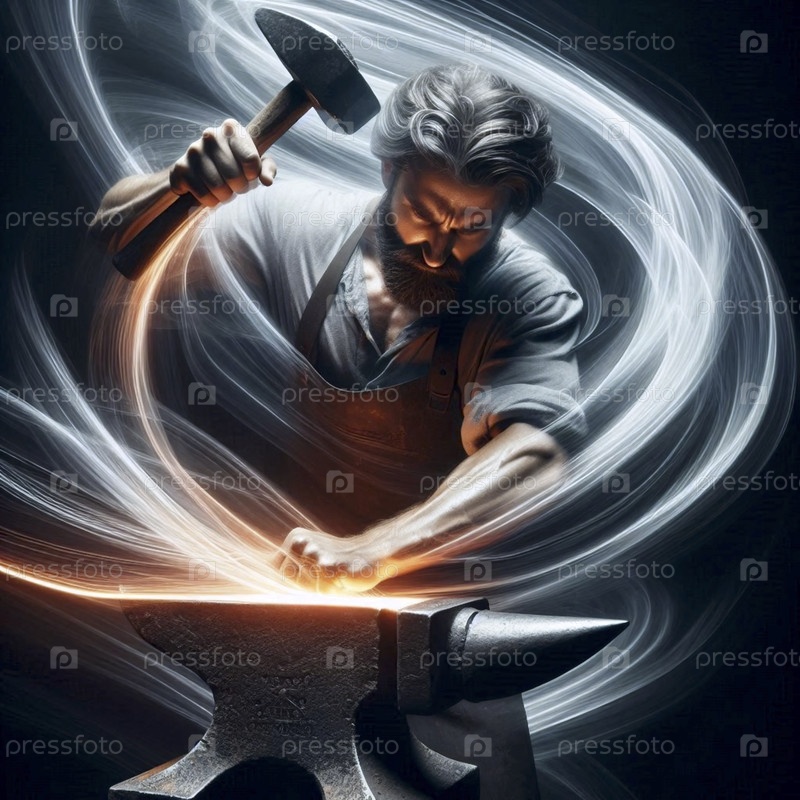 Фотография с длительной экспозицией, захватывающий удар молоток кузнеца, Ai generated image