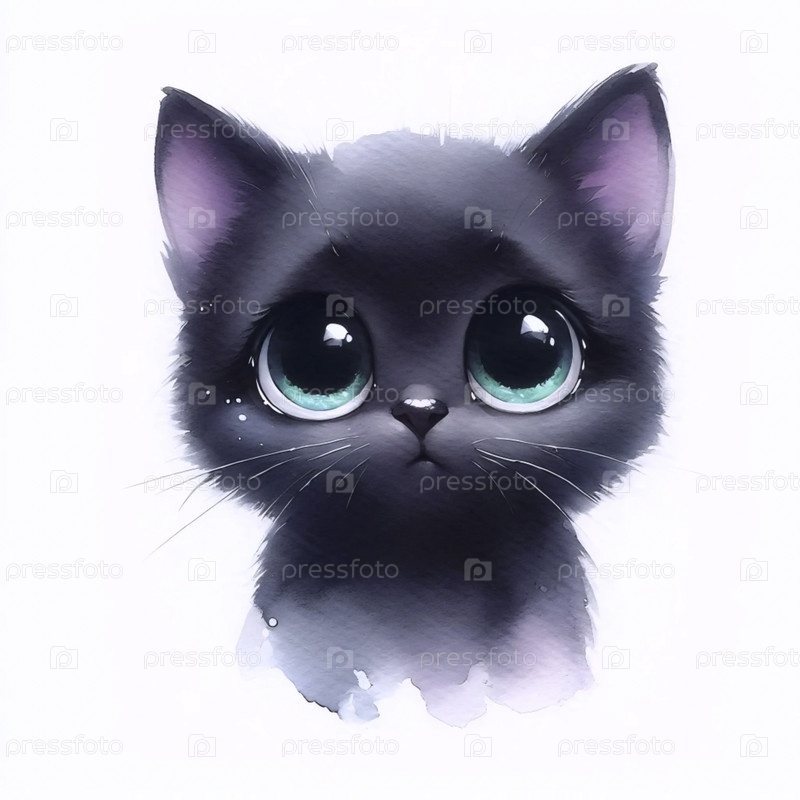 Акварельный арт-принт Pretty Cat, Ай создал изображение A