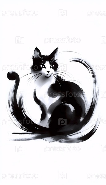 Минималистическая суми-э чернильная живопись кота, Ai generated image