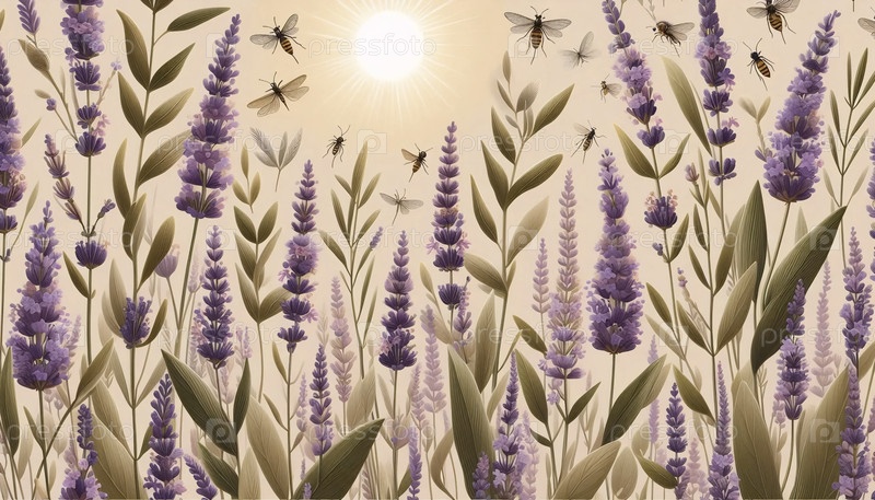 Провансальное поле лаванды бесшовный шаблон, Ai generated image
