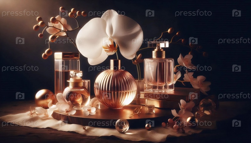 Орхидея с парфюмерными бутылками, Ai generated image