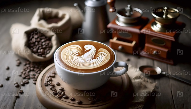 Специальный кофе латте со сложным искусством, Ai generated image