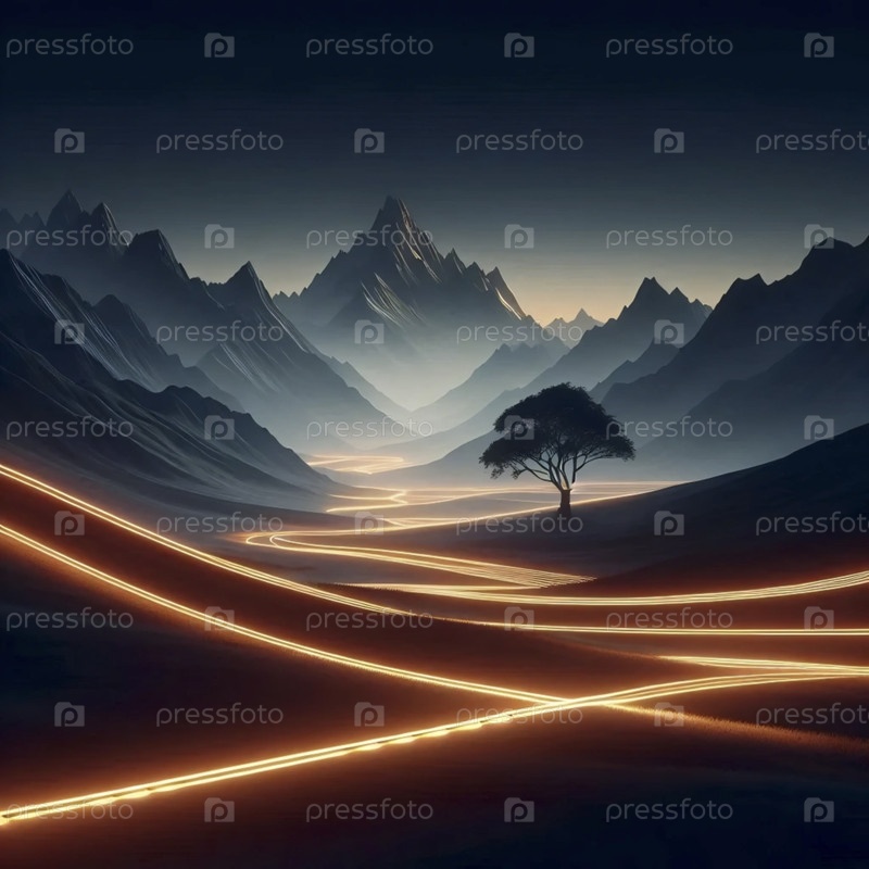 Непрерывно светящийся неоновый художественный ландшафт, Ai generated image