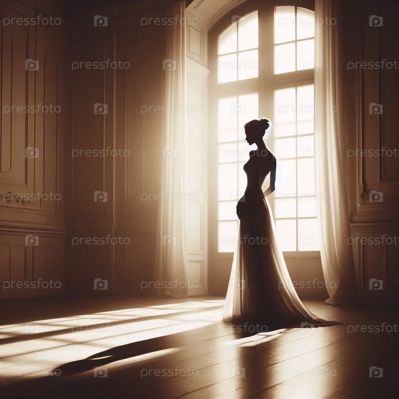 Силуэт беременной женщины сепийского тона, Ai generated image