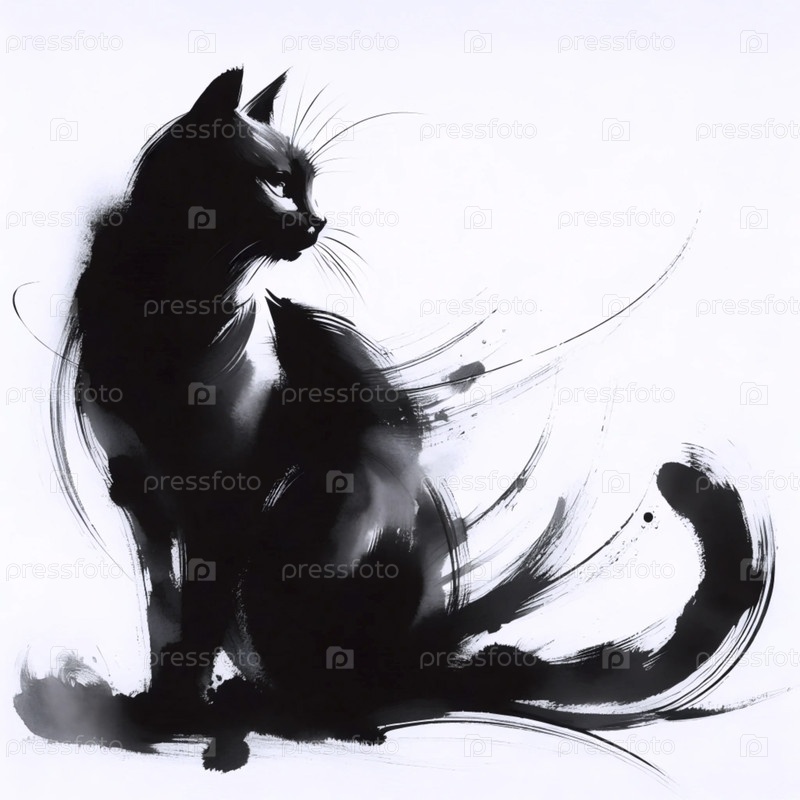 Минималистическая суми-э чернильная живопись кота, Ai generated image