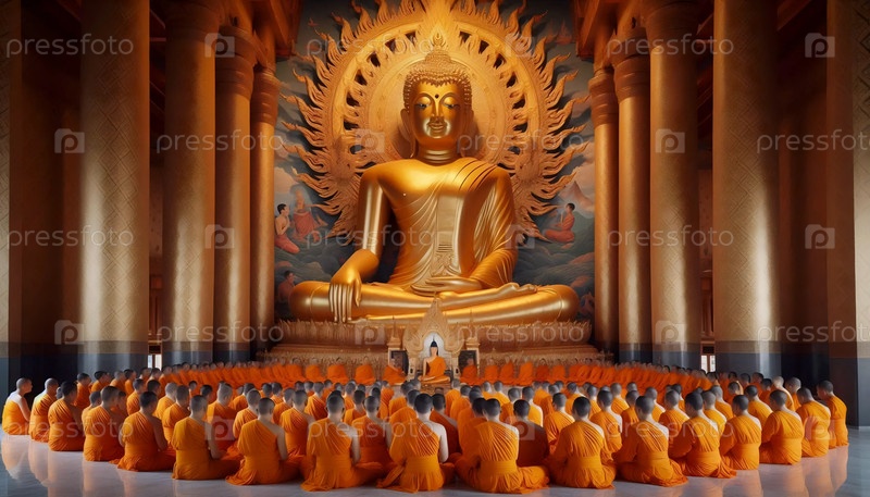 Будда с монахами, Ai generated image