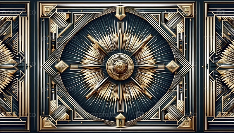 Арт-деко геометрический солнечный всплеск бесшовный шаблон, Ai generated image
