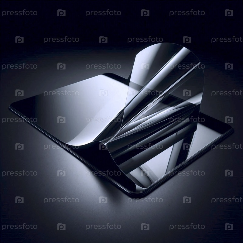 Прозрачный макет кожи ноутбука, частично очищенный, чтобы показать адгезивную сторону на отражающей поверхности